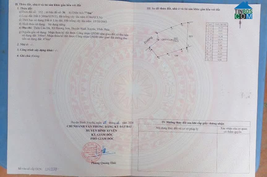 CHÍNH CHỦ BÁN ĐẤT THỔ CƯ TẠI NỘI PHẬT, TAM HỢP, BÌNH XUYÊN – VĨNH PHÚC Diện tích: 288, 4m2 Pháp lý: Sổ đỏ chính chủ Đường trước nhà: Ô tô vào tận nơi, đường bê..