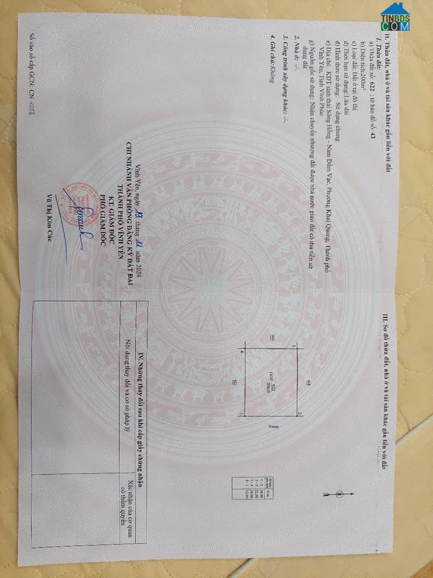 Chỉ 2 tỷ có ngay ô đất đẹp như thế này ngay tại Thành Phố Vĩnh yên - Diện tích 99, 8m - Mặt tiền: 5m - Hướng: Tây Nam Gần KCN Khai Quang, gần cạnh siêu thị Bi..