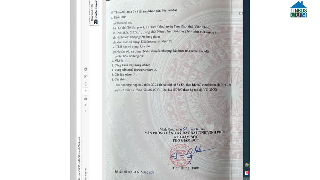 Bán đất tại đường Tông Đản, Đồng tâm, Vĩnh Yên, Vĩnh Phúc - Diện tích 653m2 - Mặt tiền: 7m - Hướng: Nam. FULL thổ cư Đường trước nhà ô tô tải vào thoả mái. Các..
