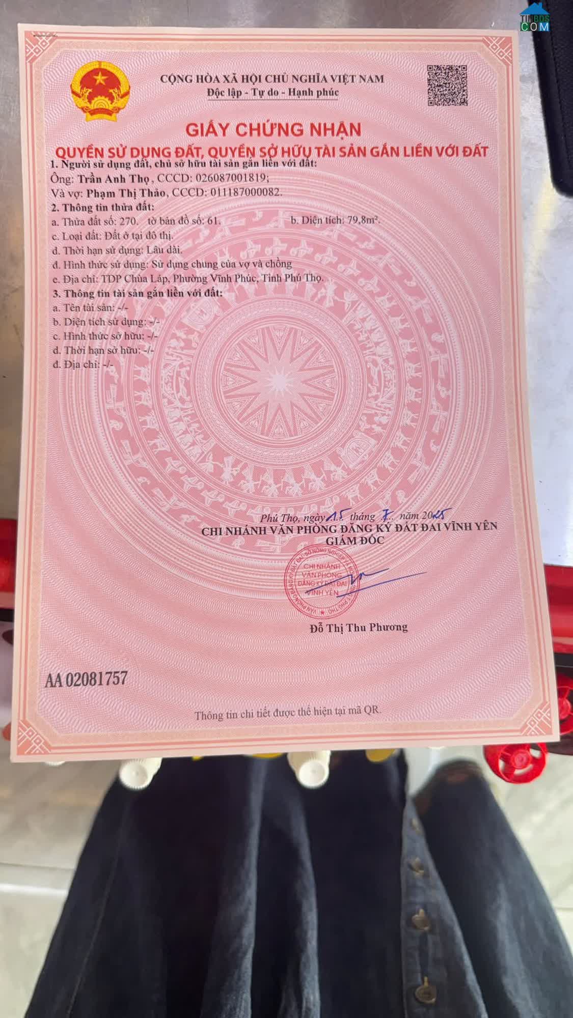 Bán đất Nguyễn Trinh, Liên Bảo, Vĩnh Yên, Vĩnh Phúc Diện tích: 100m2 Mặt tiền: 5m Hướng: Tây bắc và Đông Nam Hai đầu đường trước sau, siêu đẹp Kinh d..