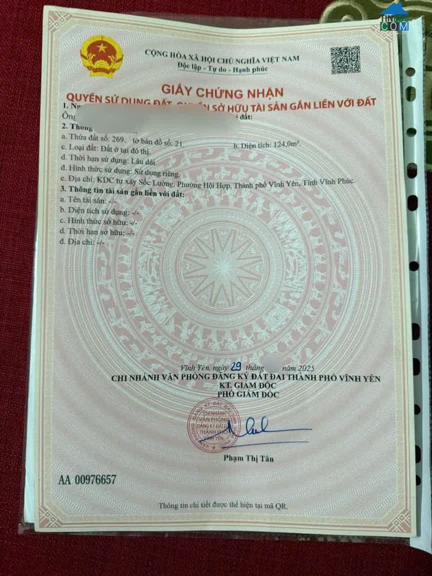 Bán lô 04 Đồng Nưa, Định Trung, Vĩnh Yên, Vĩnh Phúc Diện tích: 120m2 Mặt tiền: 6m Hướng: tây nam Ngay sát VCI, đường quy hoạch phân lô rất đẹp Hàng xóm thân..