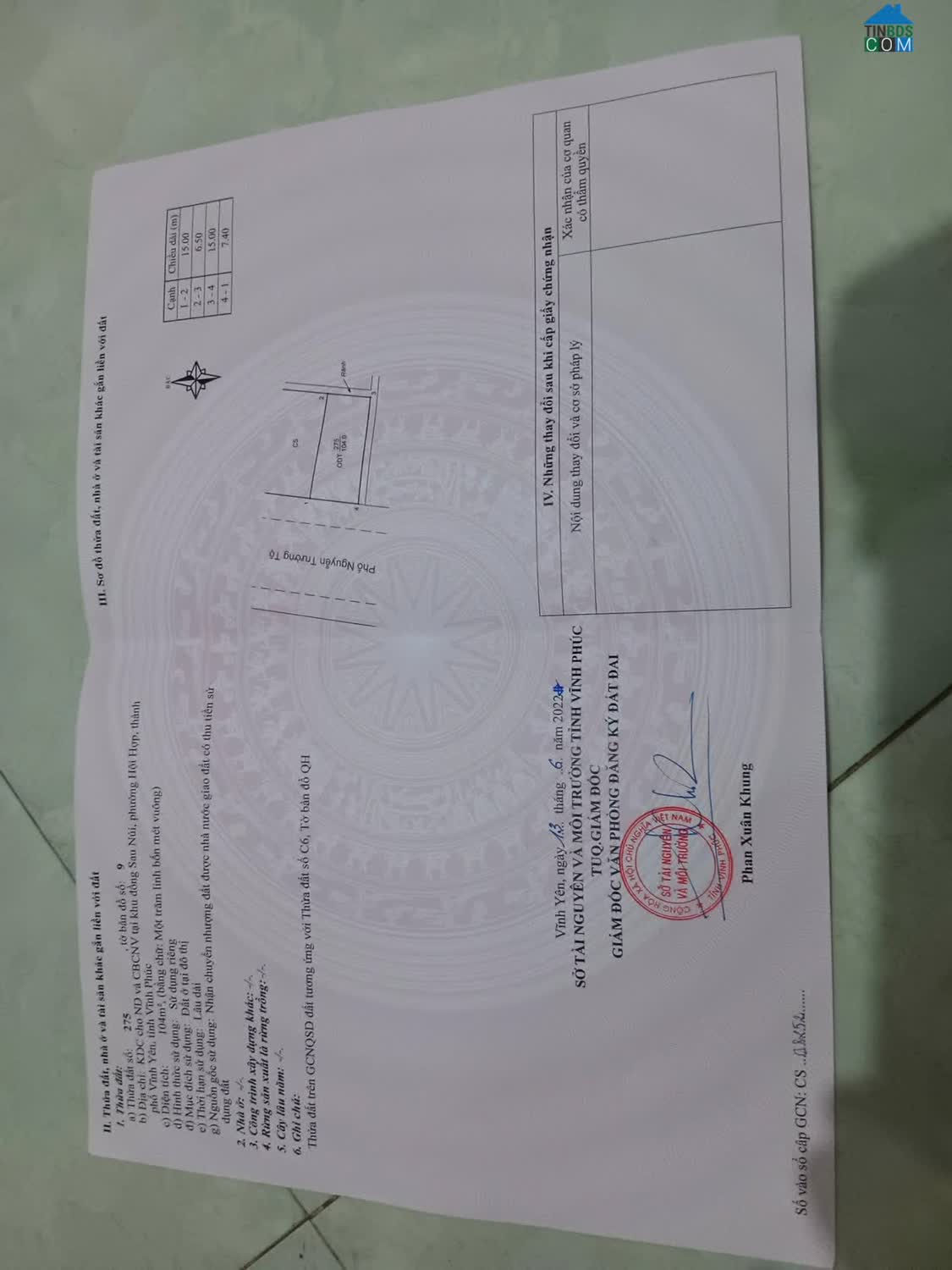 Bán đất mặt đường Kim Đồng, Liên Bảo, Vĩnh Yên giáp cổng sau bệnh viện tỉnh Vĩnh Phúc Diện tích: 110m2 Mặt tiền: 5, 5m Hướng: Đông nam Đường quy hoạch, vỉa hè..