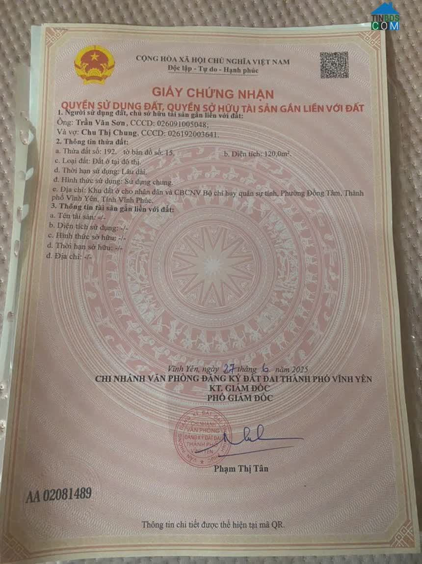 Bán đất khu đô thị Quảng Lợi, Tích Sơn, Vĩnh Yên, Vĩnh Phúc - Diện tích: 99m2 - Mặt tiền: 5m - Hướng: tây bắc Đường 19, 5m, dân cư đông đúc Xây nhà xong cấp b..