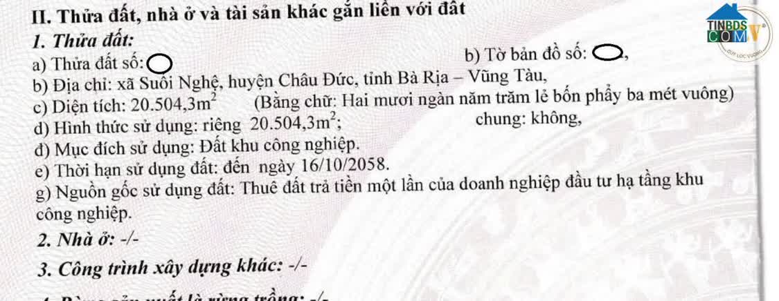 Bán lô đất 3 mặt tiền thuộc KCN Châu Đức Bà Rịa Vũng Tàu Diện tích 105. 700m2 Pháp lý đất SKK đã đóng thuế 1 lần Lô lớn duy nhất hiện nay đã đóng thuế 1 lần..