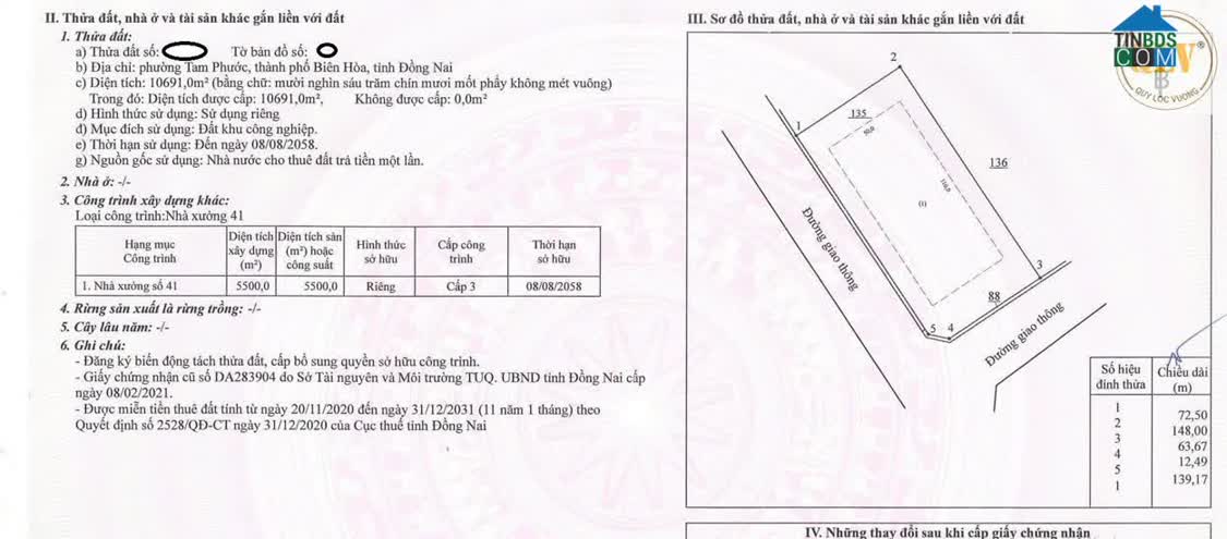 BÁN ĐẤT & NHÀ XƯỞNG – TRẢNG BOM, ĐỒNG NAI – 4. 578m² Thông tin chi tiết Vị trí: Trảng Bom, Tỉnh Đồng Nai Tổng diện tích khuôn viên: 8. 572m² Trong đó Đất..