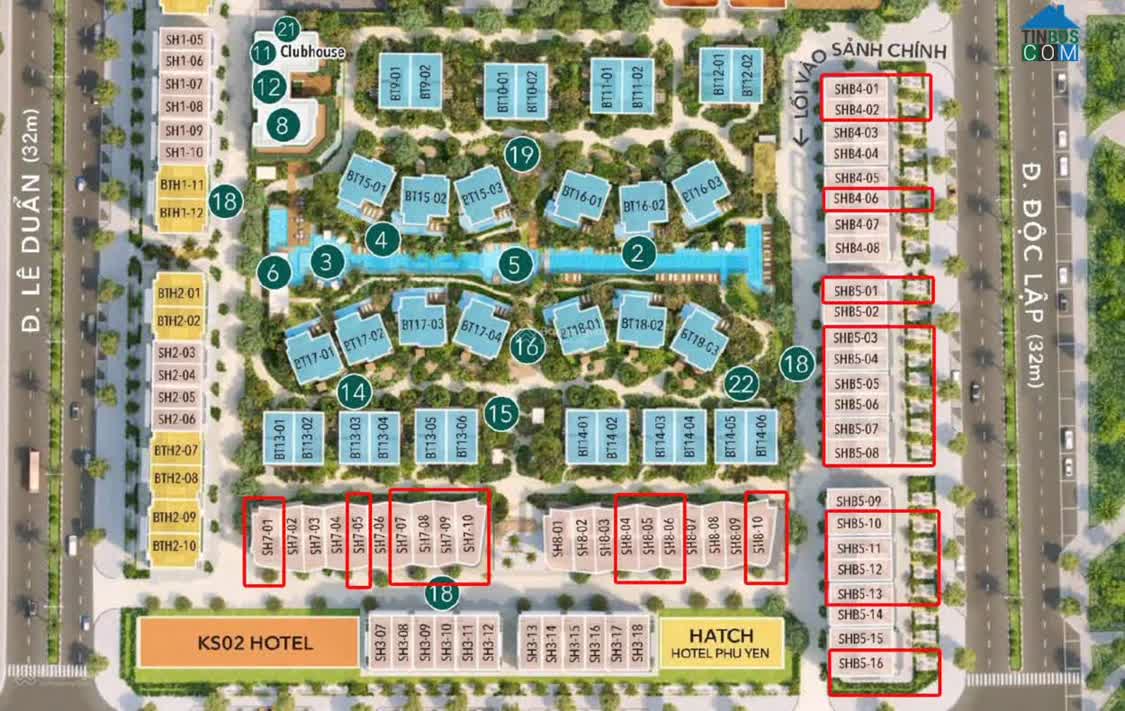 Dự án duy nhất giáp 4 mặt đường. + Mặt đường ven biển Độc Lập 32m, + Mặt đường Lê Duẩn 32m. + Mặt đường hướng biển Trần Nhân Tông 25m. + Mặt đường Võ Trứ 16..