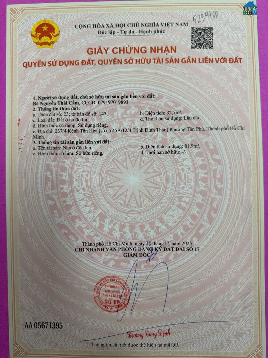Bán Nhà MT Lạc Long Quận 11, 16 TỶ TL Gần Chợ Bình Thới. Diện tích: 3. 4m x 22m (Nở hậu 4. 5m). Công nhận: 57. 3m2 - Sàn: 89m2 Kết cấu: 1 lầu, 4PN, 5WC (có phòng..
