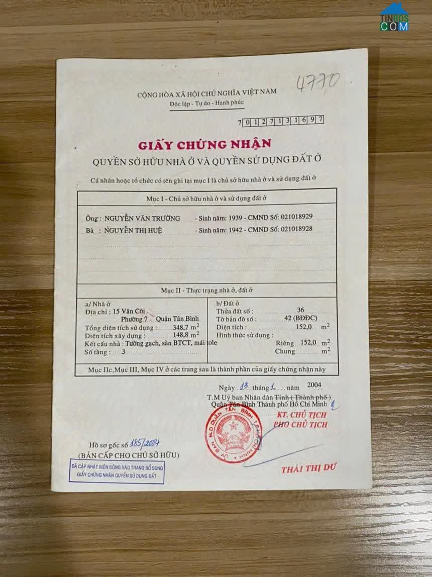 Bán Nhà Mặt Tiền 15 Vân Côi, Phường 7, Quận Tân Bình Diện tích: 6, 3 x24m Diện Tích Công Nhận: 152m2 Kết cấu: trệt lầu Pháp lý: Sổ hồng chính chủ, hoàn công..