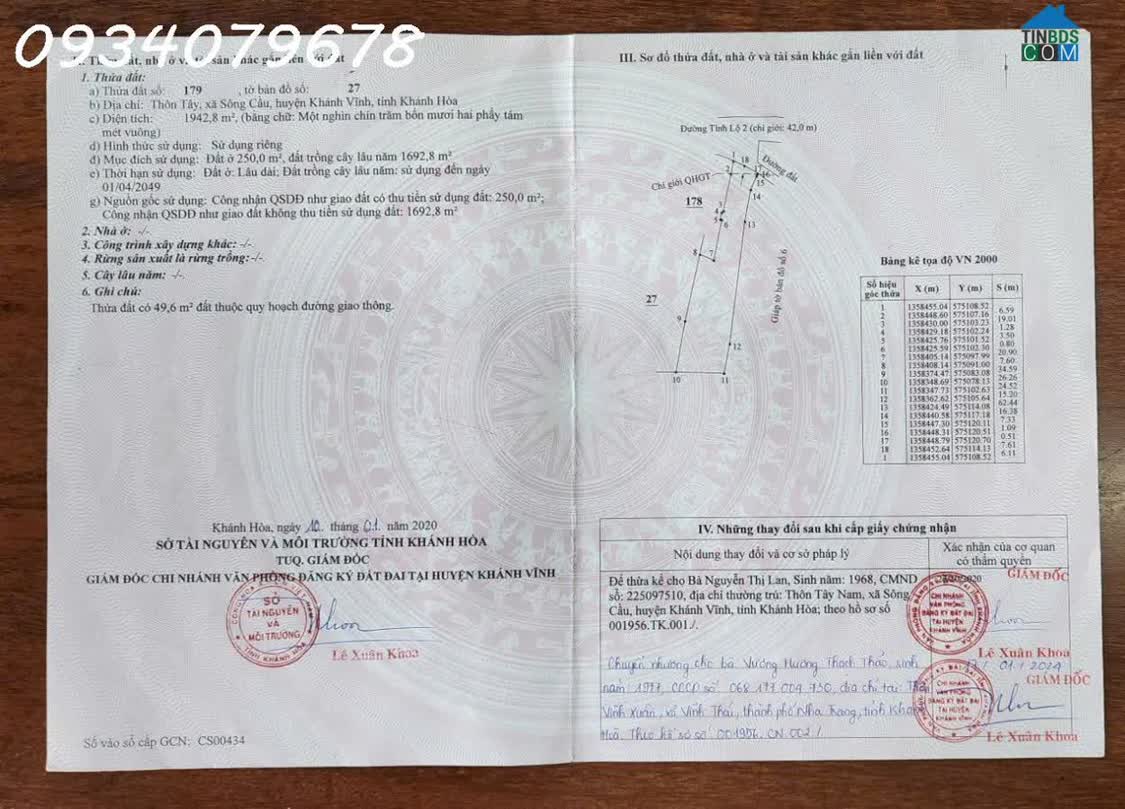 mặt tiền Tỉnh Lộ 2, Xã Sông Cầu, huyện Khánh Vĩnh (nay là xã Khánh Vĩnh) tỉnh Khánh Hòa. nằm trong khu dân cư đông đúc, phía sau của ủy ban xã, cách chợ 200m, cách trường học 200m, cách trạm xá 300m....
