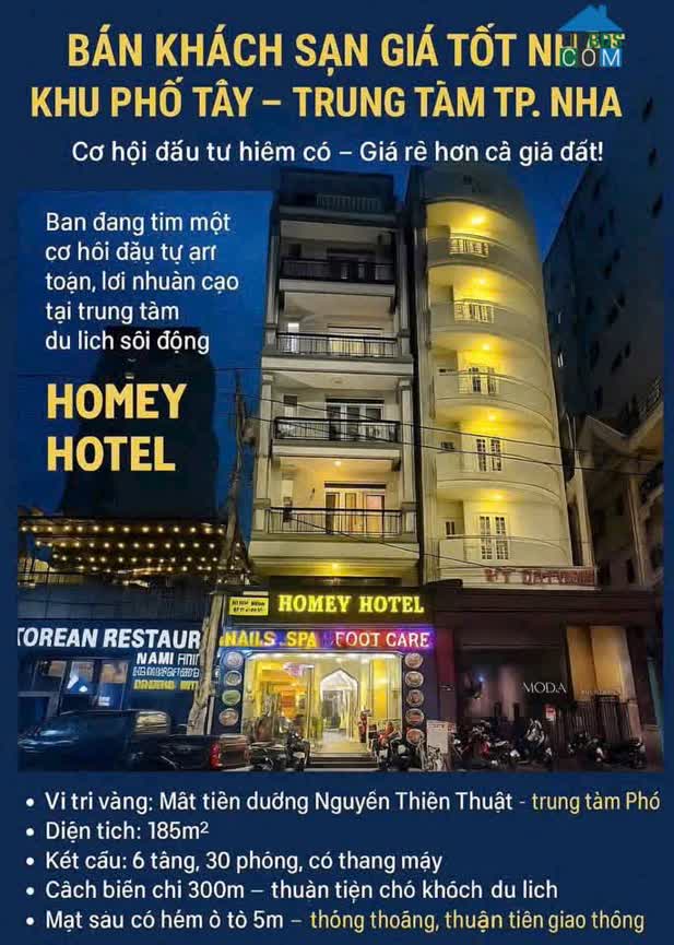 HÀNG HIẾM GIÁ SỐC: KHÁCH SẠN PHỐ TÂY NHA TRANG (320tr/m) • Mặt tiền Nguyễn Thiện Thuật, trung tâm phố Tây • Diện tích: 184m² (ngang 6, 4m) • Khách sạn 6 tần..