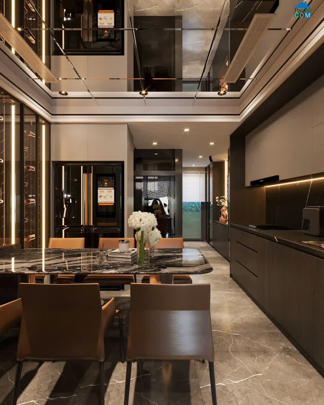 - Tầng 1. Gara ô tô riêng biệt, phòng ăn, bếp, wc.