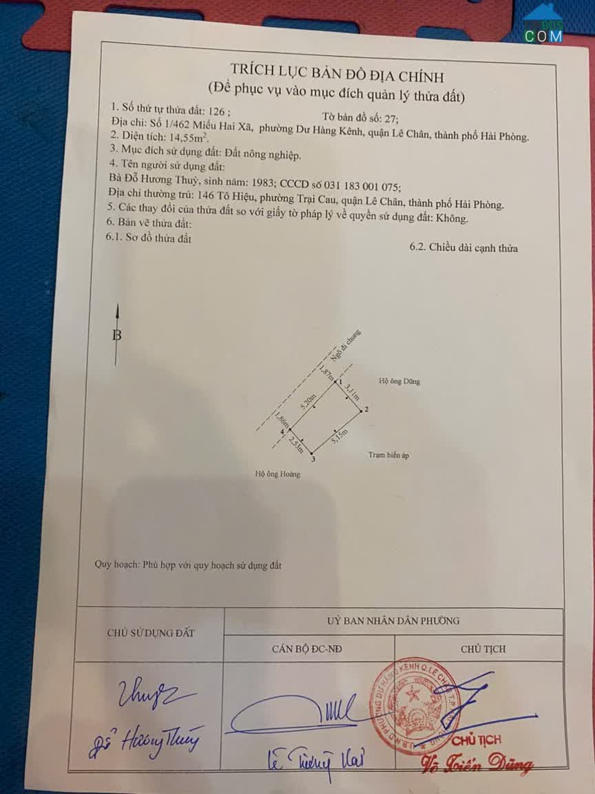 Bán nhà ngõ 355 Chợ Hàng (ô tô thông 178 Nguyễn Văn Linh), Hải Phòng, 0906187298 * Diện tích: 47m2 - Hướng: Tây Bắc * Xây 3 tầng mái bằng – tường..