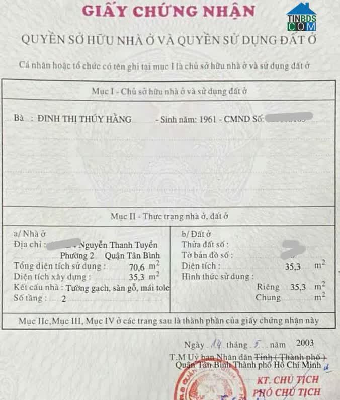 Bán nhà riêng tại Tân Bình - Hồ Chí Minh