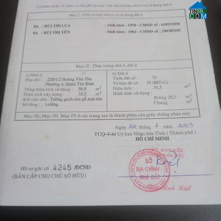 Chính Chủ Cần Bán Gấp Nhà Vị Trí Đẹp Tại Quận tân Bình tp Hồ Chí MinhĐịa chỉ: 220/1 Hoàng Văn Thụ, phường 4, quận Tân Bình, tp HCMDiện tích: 36m2 (4,3×8,3...