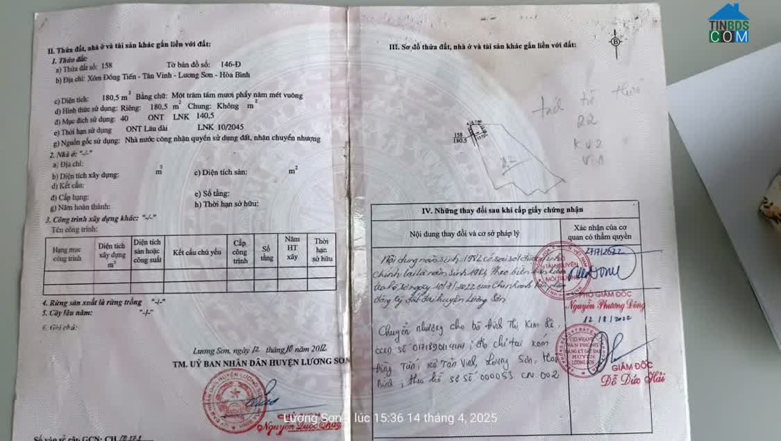 Bán nhà s221 khu Sunvila xóm Cời xã Tân Vinh - Lương Sơn - Hoà Bình. Diện tích công nhận: 340m² chia làm 2 sổ (pháp lí rõ ràng). Nhà 1 trệt 1 lầu gồm 1 phòng k..