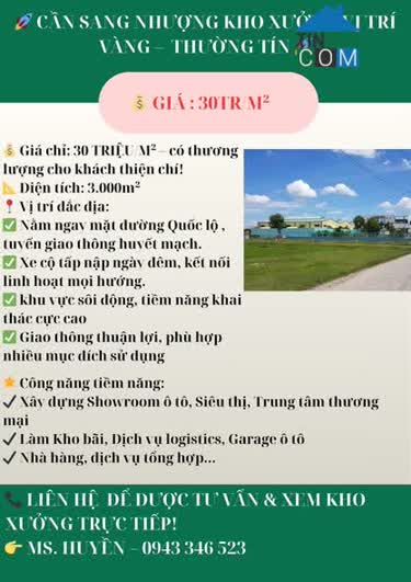 🏠 CẦN SANG NHƯỢNG KHO XƯỞNG VỊ TRÍ VÀNG – THƯỜNG TÍN 🏠