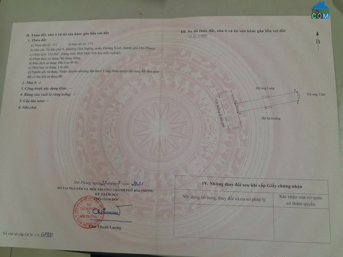 -Diện tích: 102m² – Ngang 3,9m-Vị trí: Tổ dân phố 6, phường Hoà Nghĩa, Dương Kinh-Mặt đường nhựa 11m có vỉa hè, trục thông thoáng-Gần UBND, gần Vinhomes Marina, bán kính 400m đủ trường – chợ – tiện ích-Khu dân cư đông đúc, an ninh tốt-Pháp lý: Sổ hồng riêng, đất ở đô thị-Giá: 2x triệu/m²-Tiềm năng: Tuyến đường mở rộng mạnh, gần đại đô thị Vinhomes → biên độ tăng giá cao, thanh khoản tốt